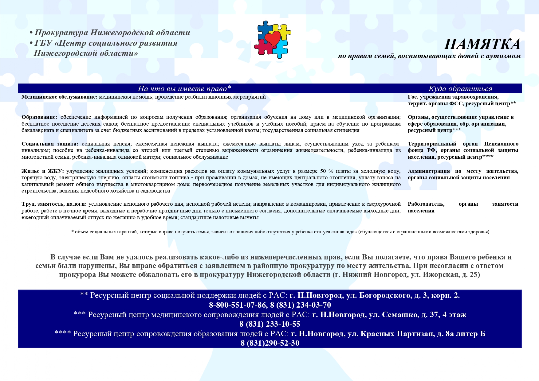 Семьи, воспитывающие детей с аутизмом (расстройством аутистического спектра, РАС), имеют права в разных сферах: медицине, образовании, социальной защите и жилищных условиях. Эти права закреплены в законодательстве и включают меры поддержки, которые помогают обеспечить детям необходимую реабилитацию, развитие и комфорт.